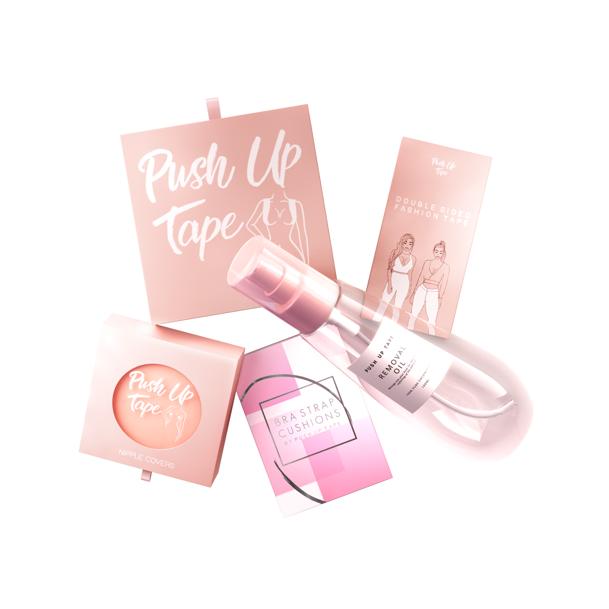 Push Up Tape is perfect for when you are wearing a low cut, backless or strapless outfit. You can also keep your clothing in place with our transparent Double Sided Fashion Tape. Or perhaps you are going for the dare-to-bare look and want your nips covered with our Premium Nipple Covers. But we know it can’t be all play, so we’ve included our Bra Strap Cushions for when you’re on the go doing Boss girl stuff and want extra comfort. Lastly, our removal oil is the perfect accompaniment to Push Up Tape. Massage it into your Push Up Tape for quick softening of the adhesive, leaving your skin silky smooth and nourished.